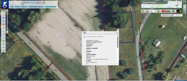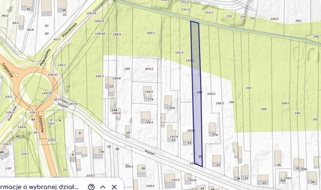 3Oferuję działkę o powierzchni 0,1897 ha Dojazd z drogi asfaltowej Bez obciążeń prawnych Księga ...